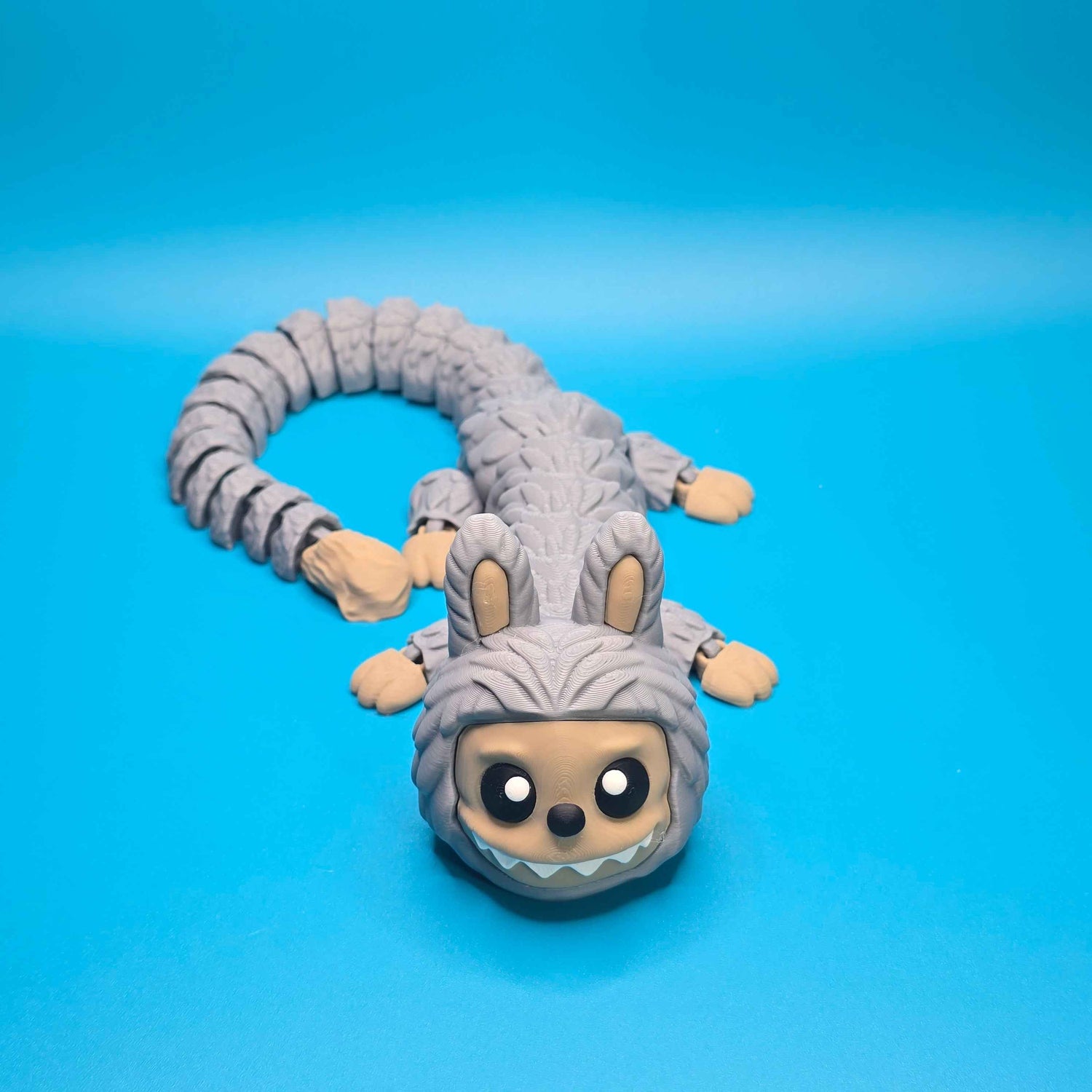 Segmented like a serpent, mischievous like a gremlin. This articulated oddity slinks across shelves in dragon-like fashion — twisting, posing, and unsettling everything in its path.